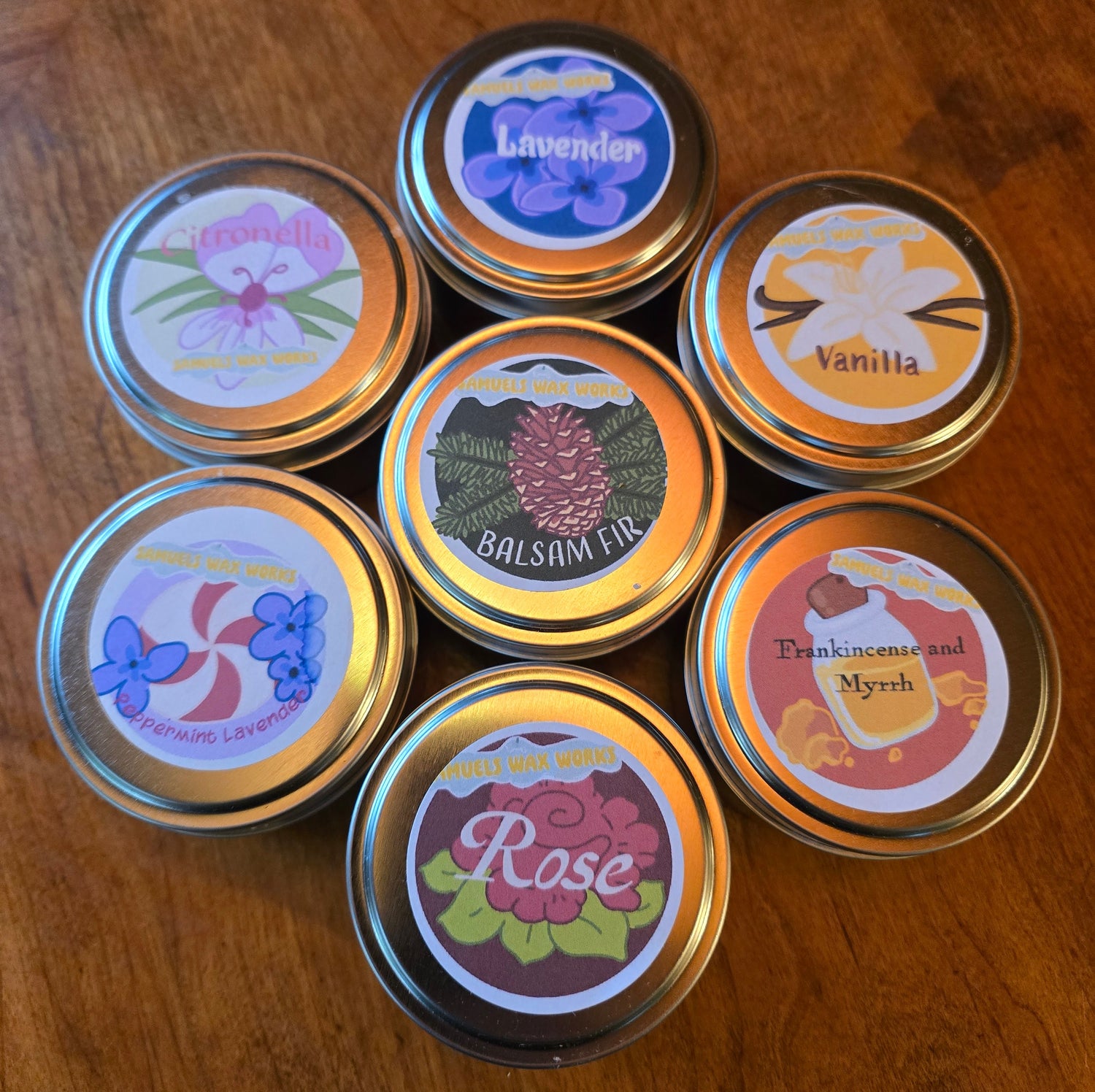 Here at Samuel's Wax Works, we produce light weight travel candles with a focus on portability and sustainability! It is our hope that these hand-crafted soy wax candles will lighten your day wherever you are.